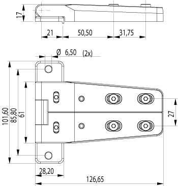 面安装的重型铰链,特别设计用于绝缘门。可在三个尺寸上调整以确保门齐平。带有一个用于门板薄的固定板。当下面的铰链部件先移去时,有装卸功能。打开角度为180度。有镀锌或喷粉选择。 在X,Y和Z轴上均可调整±3 mm。 提供可调节螺钉和固定板。 材料: 门件和门框件:锌材质,镀锌或黑色纹理喷粉。 固定板:锌材质,镀锌。 铰链销:钢,镀锌。 六角螺钉(UNC螺纹):钢,镀锌。 垫片:铜,镀镍。