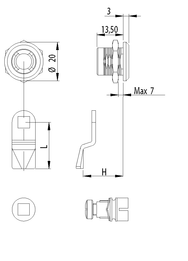 抗振紧凑型直角回转锁的部件带内部旋转限位。通过逆时针或顺时针旋转打开或关闭。
