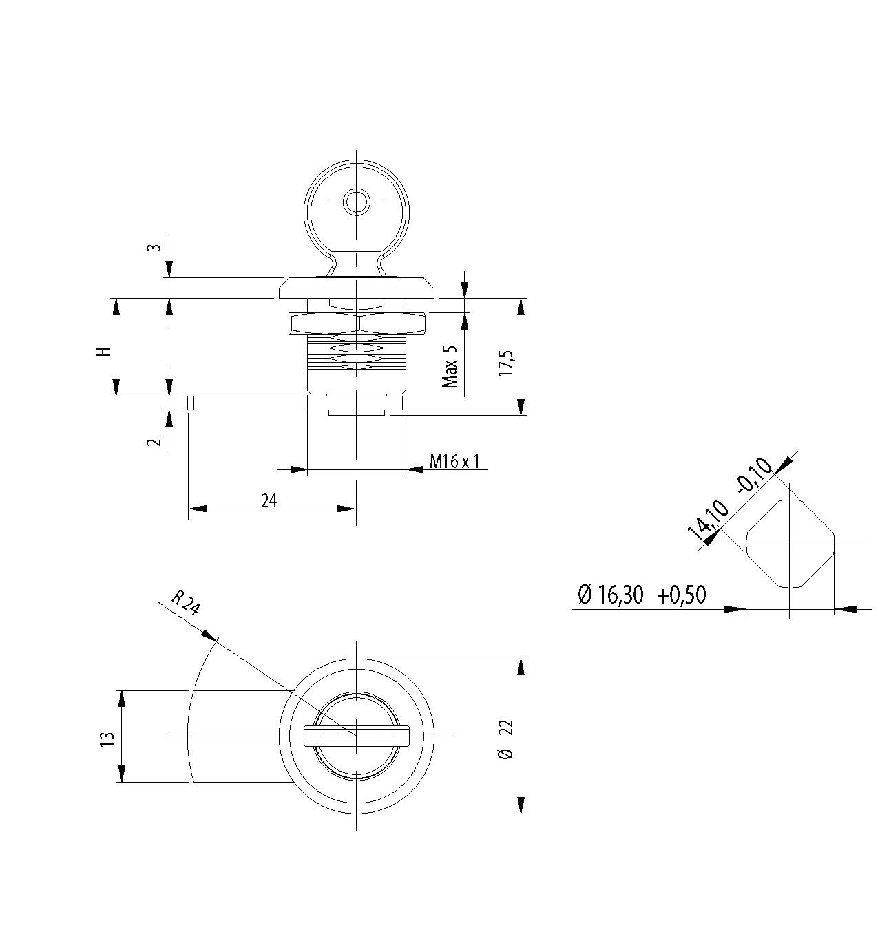 紧凑型圆柱形锁可90度旋转。通过逆时针或顺时针旋转打开或关闭。