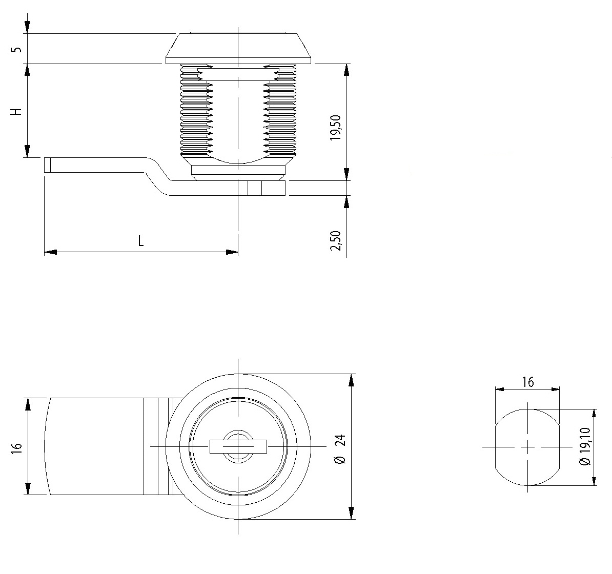 圆柱形锁芯:锌铸件,304 不锈钢盖和防尘片。