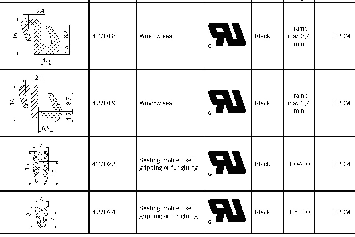 于各种用途的密封条依照表格中的描述。