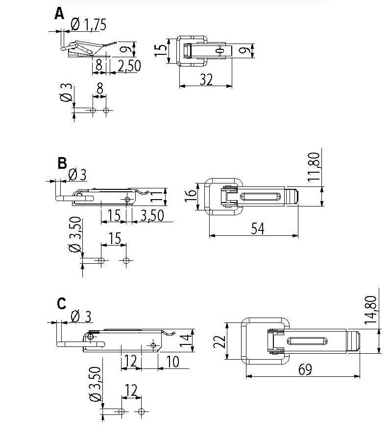 类型B和C带直式钢吊扣和用于锁销的3MM孔。